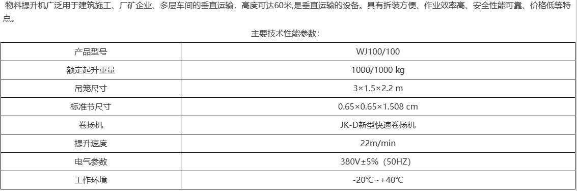 WJ100物料提升機
